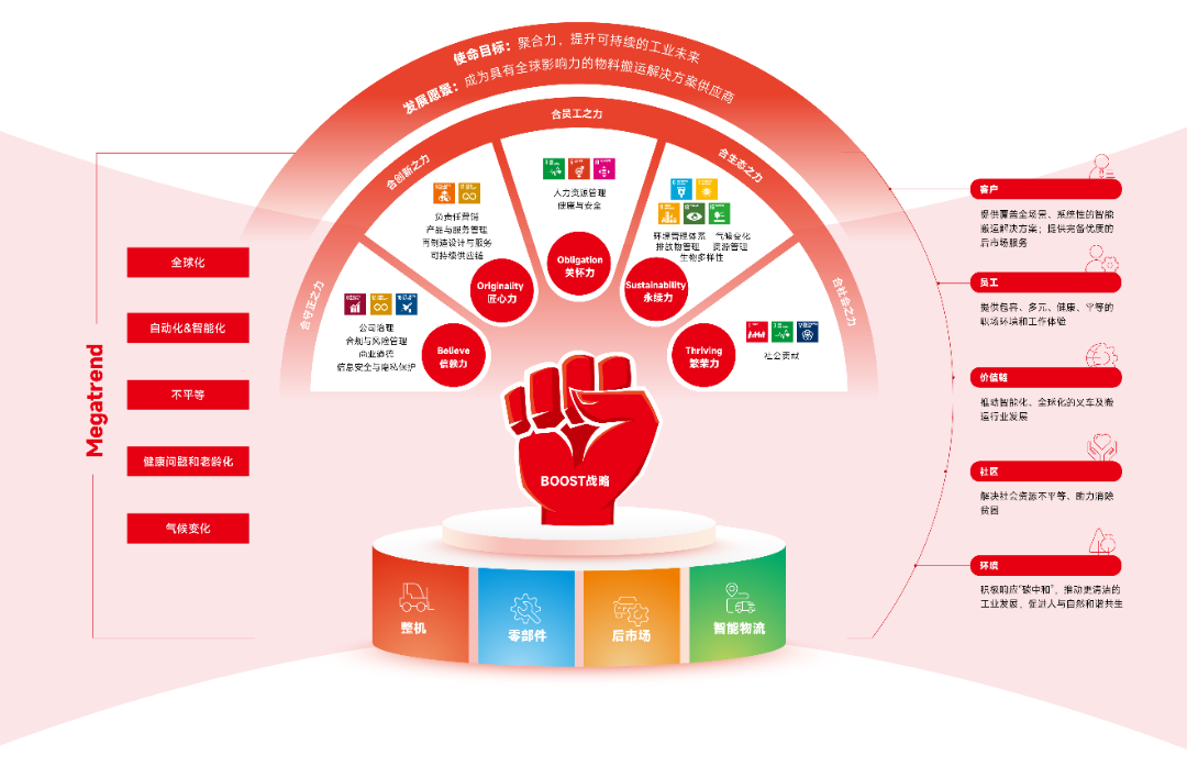 作為中國工業車輛行業的領軍企業,安徽合力秉持“合力提升未來”的使命,系統構建具有行業特色的ESG戰略管理與實踐體系,扎實推進可持續發展“BOOST”戰略,全面深化ESG管理,持續提升ESG表現,共繪可持續發展的工業藍圖,努力為實現經濟繁榮、環境可持續和社會公平積極貢獻合力力量。