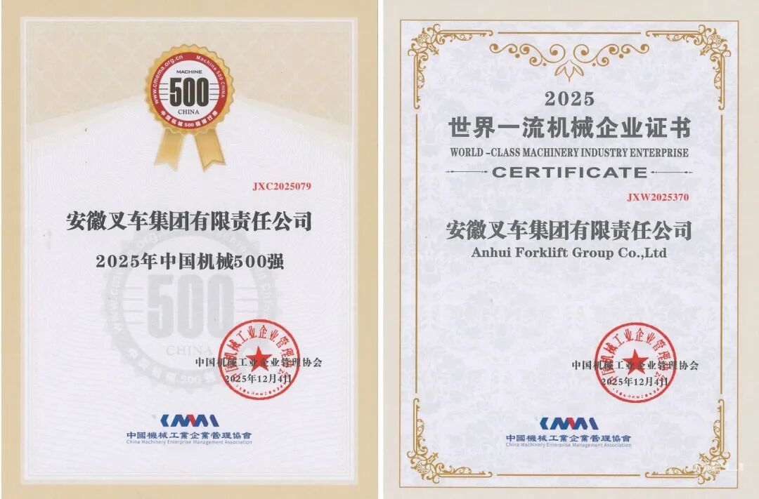 近期,國(guó)家及省市各級(jí)企業(yè)聯(lián)合會(huì)、企業(yè)家協(xié)會(huì)陸續(xù)發(fā)布年度企業(yè)榜單。憑借穩(wěn)健的經(jīng)營(yíng)業(yè)績(jī)與卓越的實(shí)踐表現(xiàn),安徽叉車集團(tuán)(以下簡(jiǎn)稱“合力”)成功入選“2025中國(guó)制造業(yè)企業(yè)500強(qiáng)”、“2025安徽企業(yè)100強(qiáng)”、“2025安徽制造業(yè)100強(qiáng)”、“2025安徽百?gòu)?qiáng)企業(yè)戰(zhàn)略新興業(yè)務(wù)營(yíng)收30強(qiáng)”及“合肥市50強(qiáng)”等多項(xiàng)權(quán)威榜單。尤為值得一提的是,合力今年首次躋身“中國(guó)制造業(yè)企業(yè)500強(qiáng)”,排名第489位;同時(shí),在“安徽企業(yè)100強(qiáng)”和“合肥市50強(qiáng)”中的排名也實(shí)現(xiàn)穩(wěn)步提升,分別較“十三五”末提升7位和5位。多項(xiàng)榮譽(yù)的取得,是合力高質(zhì)量發(fā)展的生動(dòng)體現(xiàn)。