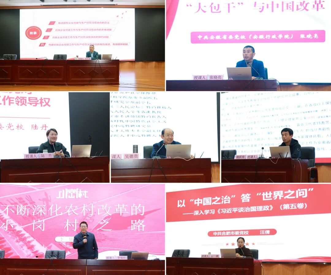 安徽叉車集團黨委高度重視本次培訓班,采用全脫產封閉式培訓,時間緊湊,內容豐富,特別邀請了省國資委、省委黨史研究院、省委黨校、合工大黨校和淮南市委黨校的有關領導、專家教授進行授課,重點安排了黨的二十屆四中全會精神解讀、《習近平談治國理政》第五卷輔導、意識形態與統戰工作專題培訓、黨建工作與生產經營融合、大包干與農村改革等課程,實地參觀了蚌埠液力新工廠,組織觀看了廉政警示教育片,開展了參觀大包干紀念館、當年農家等現場教學,并以“改革創新精神,推動工作高質量發展”為主題開展分組研討,緊密圍繞“三新”破局,剖析難點問題,暢談工作體會,為安徽叉車集團高質量發展積極貢獻力量。