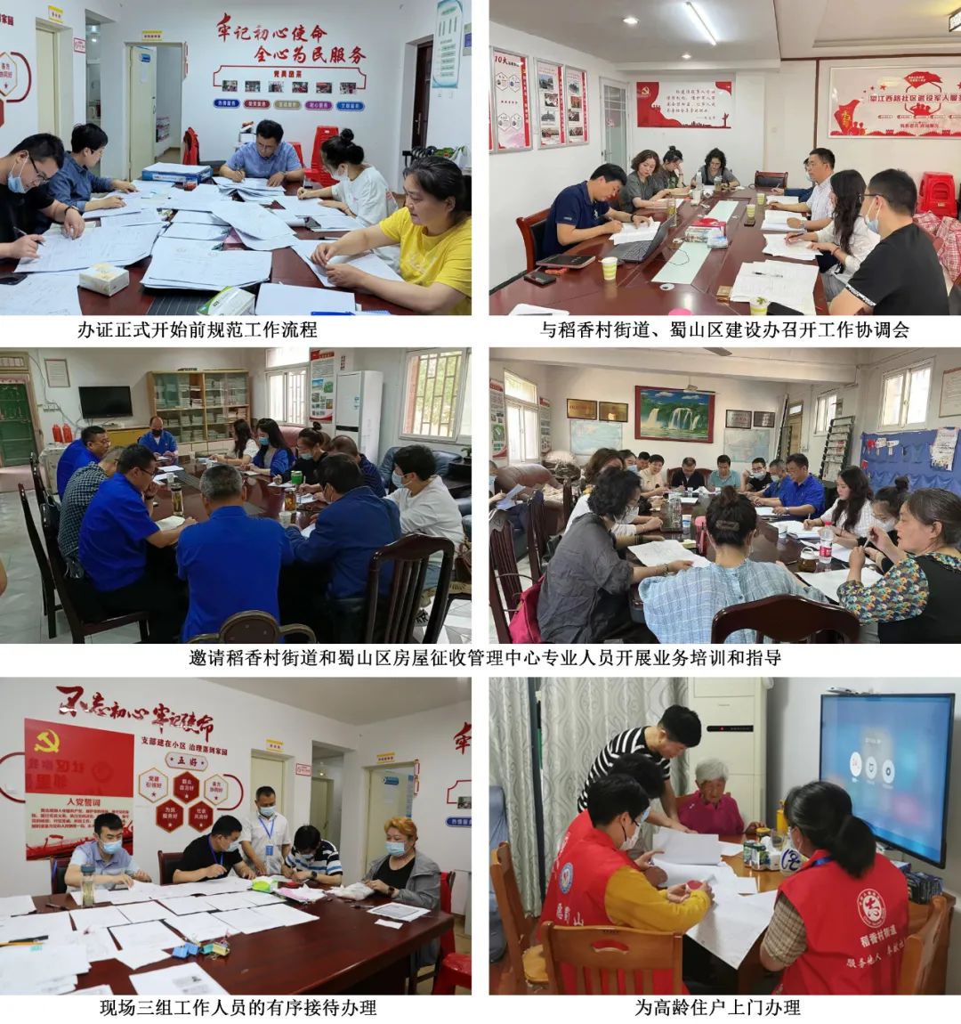 據了解,為保證此項工作有序推進,興業公司及時成立康馨名家辦證工作小組,在5月13日、16日、18日連續與稻香村街道、蜀山區建設辦召開工作協調會,并于5月19日向集團公司辦公會提交此項辦證事宜。為提升工作質量,5月19日、23日,興業公司邀請稻香村街道和蜀山區房屋征收管理中心專業人員開展業務培訓和指導。在一切準備工作就緒后,5月25日上午,正式開啟康馨名家原叉車廠二、三村住戶房產證辦證資料收集工作。在現場工作人員的有序接待下,截至目前,已收集和審核完畢167戶辦證材料。
